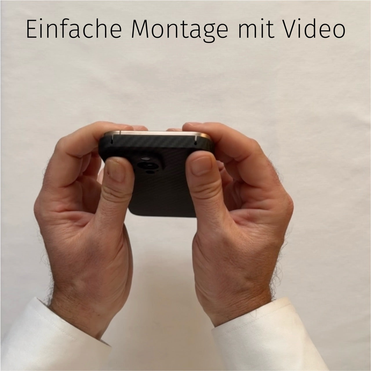 - Liegt eng an: beim Anlegen muss das Case gezielt verformt werden: das gelingt in wenigen Minuten mit Montage-Video (Menüpunkt "Service")