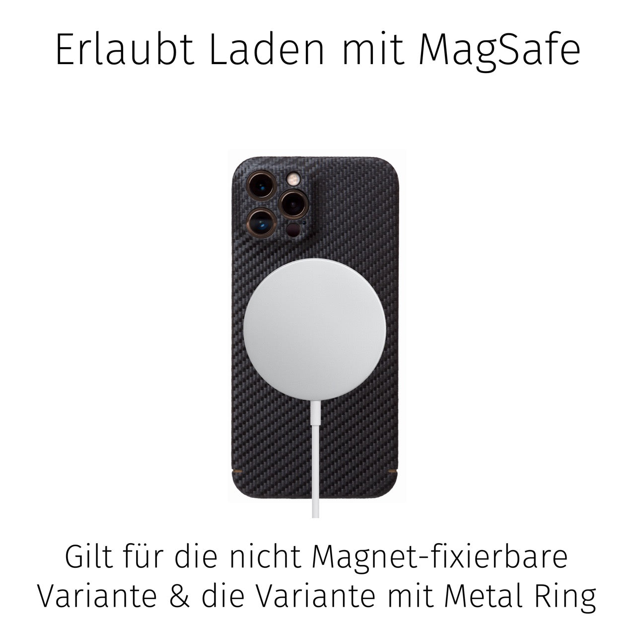 - Das Laden mit dem MagSafe Charger ist möglich (die Ausrichtung erfolgt an den Magneten im iPhone)