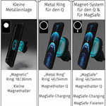 - Das Case kann ausschließlich am Magnethalter Q im Raum fixiert werden (normale MagSafe Halter sind nicht stark genug)