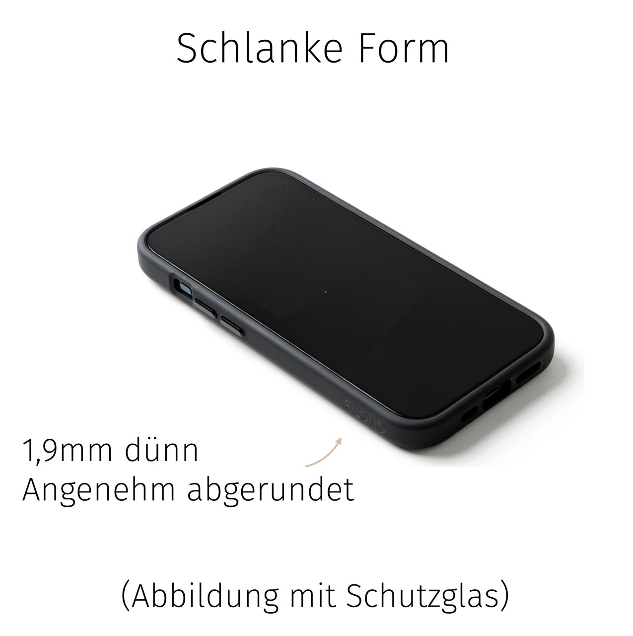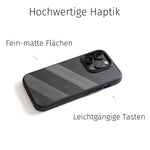 • Fein-matte Oberflächen, ähnlich wie das strukturierte iPhone Rückseitenglas, aber wärmer im Griff