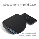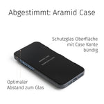 Das Aramid Case auf die Glasgröße, die Schutzlippe des Hybrid Case dann ebenfalls auf die Glasgröße.