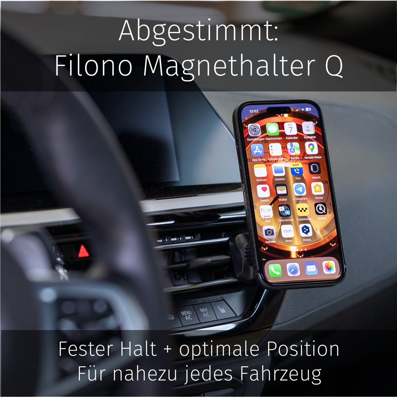 • Für eine Magnet-Fixierung im Auto empfehlen wir - aufgrund der stärkeren Haltekraft - den Filono Magnethalter Q